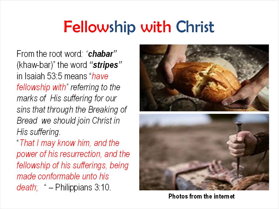 When Jesus Christ at the Garden of Gethsemane said, “This is my (broken) Body” (Matthew 26:26) is like literally saying that it was “This is my bruised-fellowship body” TAKE, EAT, THIS IS MY BODY.”