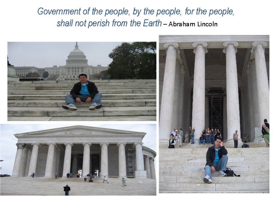 While I was visiting Washington, D.C. in 2006, I was quite fascinated on the foundation of the great nation America in terms of their collective high ideals on terms of governance. When I visited the Abraham Lincoln Monument, a former U.S. President I remember his classis quotation on democracy that states that: