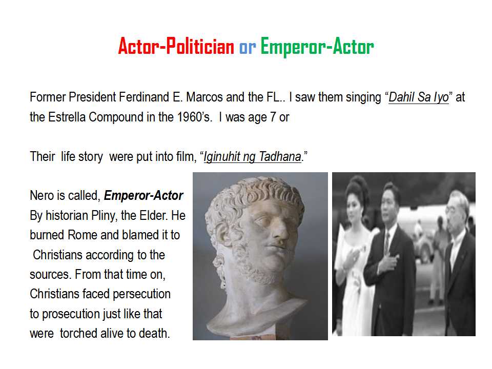 And you will soon find those myths and historical facts are still very much alive today in “different forms” as you will see them in the form of recent photos of “politicians-actors” or “actor-politicians” like Nero aka Augustus Caesar.