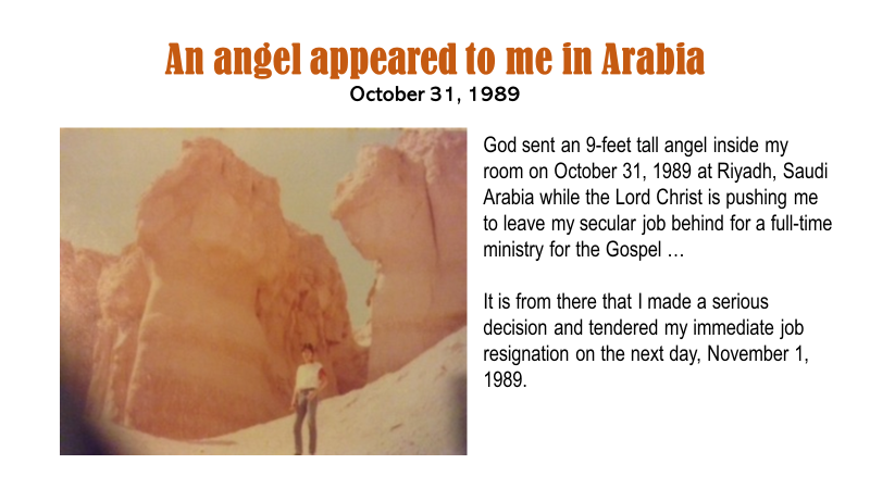 It is from there on that angelic-visitation that I made a serious decision and tendered my immediate job resignation on the next day, November 1, 1989.