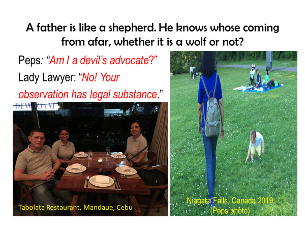 In one our meeting with a lady corporate-lawyer at fine-dining Tabolata Restaurant, I asked her, “Am I a devil’s advocate?” referring on some questions which is related to the corporate contracts we made with a certain foreigner-businessman. The lady-lawyer answered and said, “No! Your questions and observations have a legal substance. “